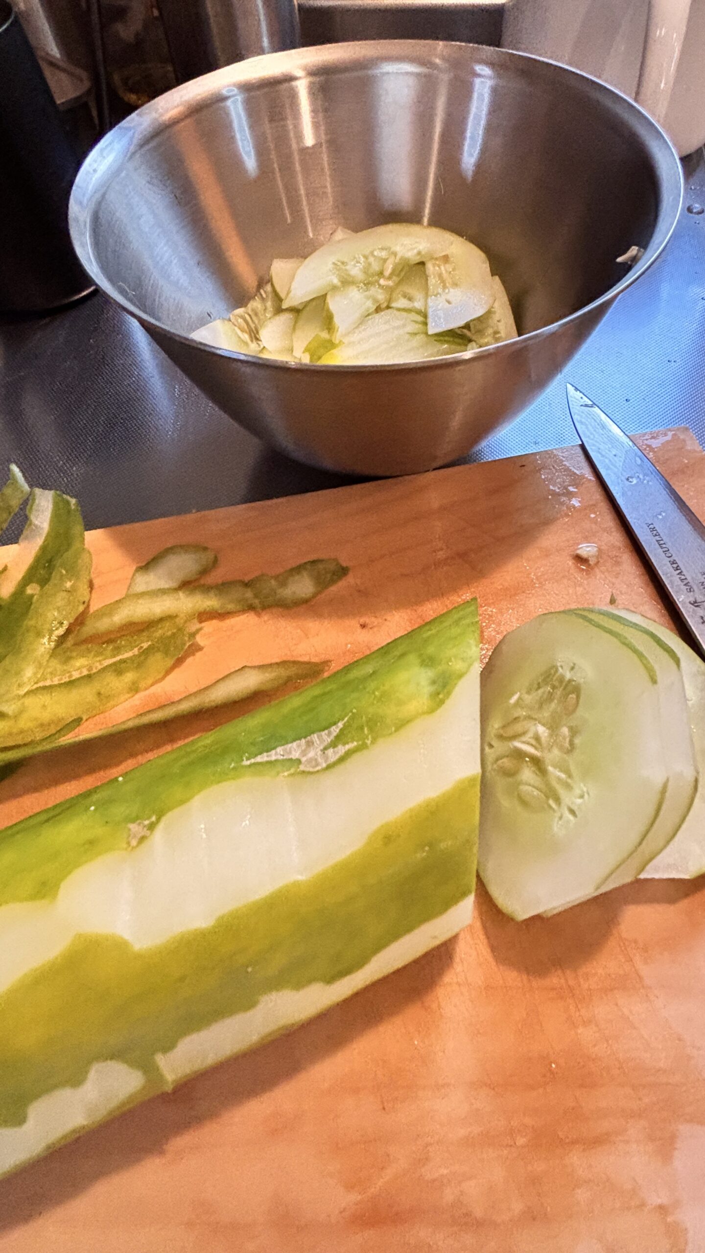 熟しすぎて、巨大に、黄色くなった きゅうりを食べる^_^